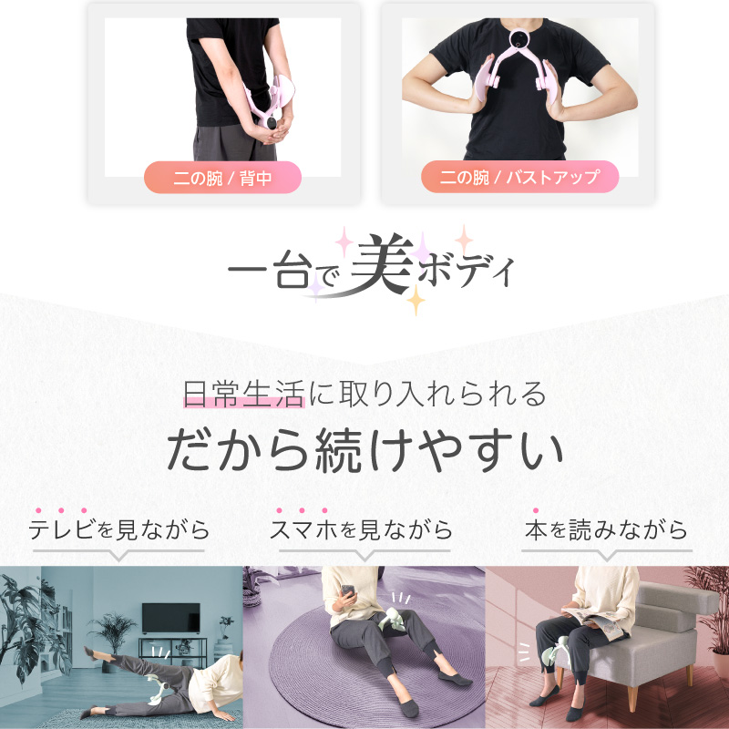 骨盤底筋 内転筋 内もも 内股 お尻 もも裏 二の腕 バストアップ おしり ヒップ 腕 肩 脚 足 下半身