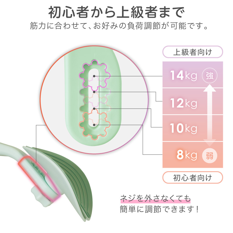 また、ネジを外さず「4段階負荷調節」も可能で、初心者から上級者まで対応しております。